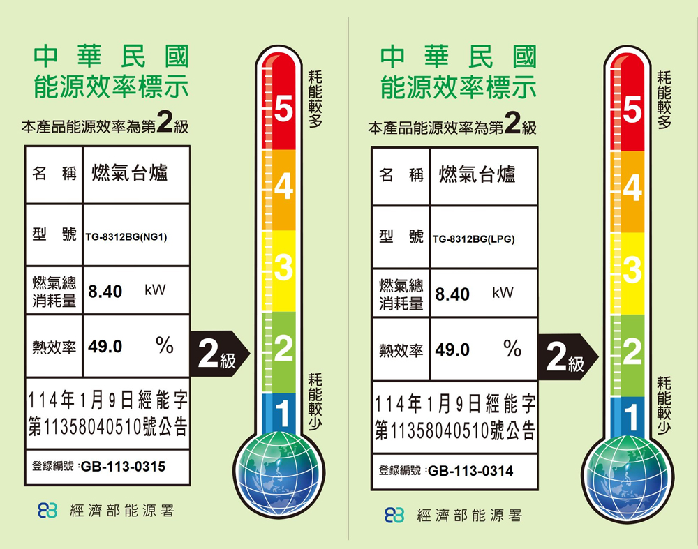 | 熱效率 | LPG 49.6% NG 49.1% |