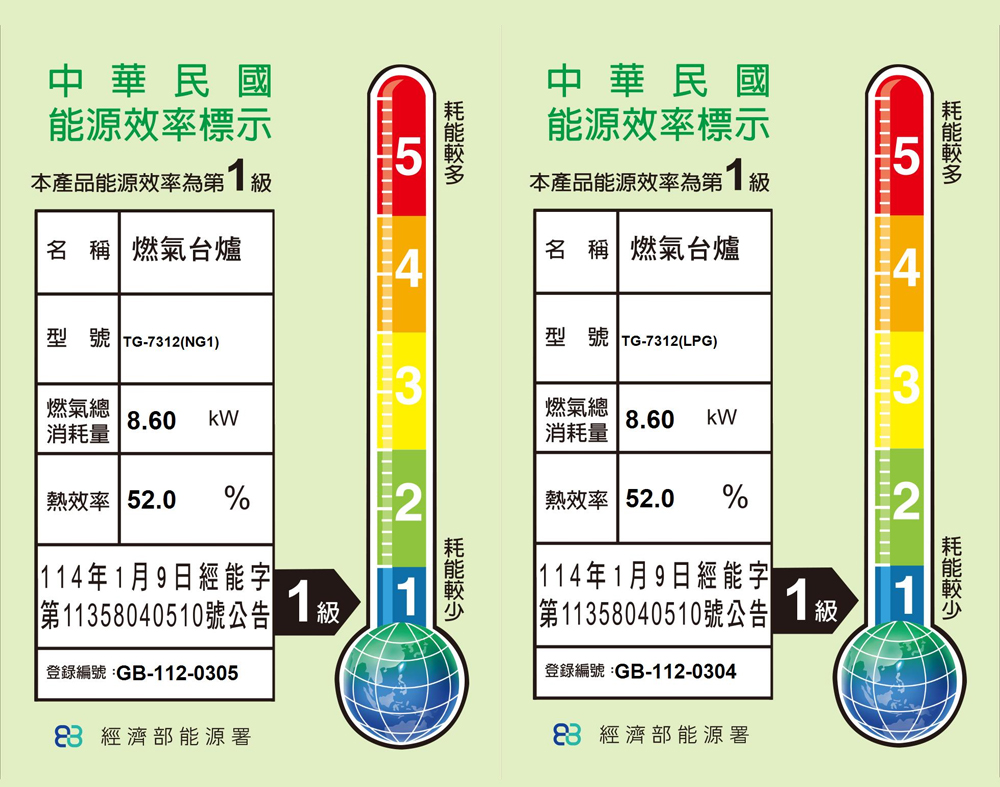 | 瓦斯消耗量 | LPG 8.6Kw / NG 8.6Kw |