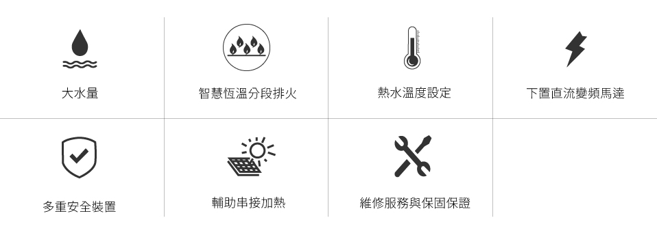●智慧恆溫火排分段功能(自動切換六排、九排及十五排火)自動微調火力大小,水溫不會忽冷忽熱,適合春夏秋冬季節使用