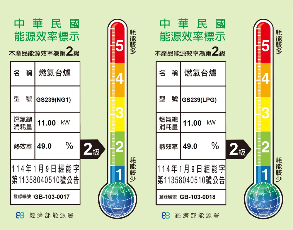 和成牌 GS-239大三環雙口瓦斯爐(附清潔盤)