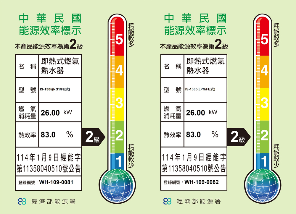 莊頭北工業IS-1305 13L強制排氣熱水器