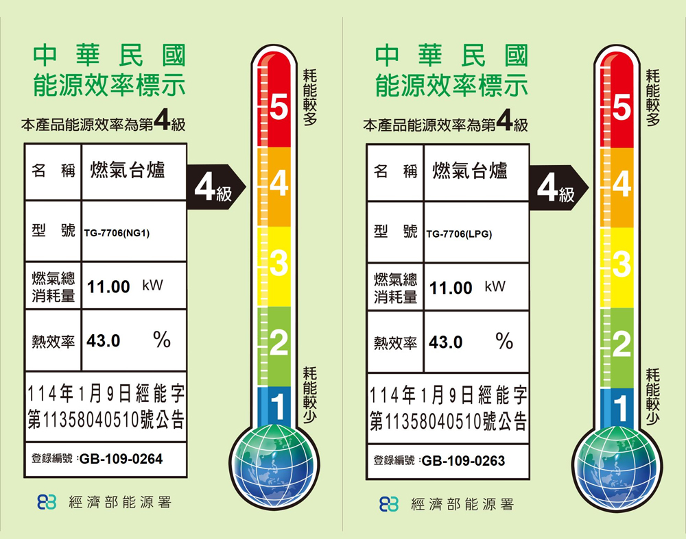 | 瓦斯消耗量 | LPG共10.0kW (0.70kg/h)NG 共9.3kW(8000kcal/h) |