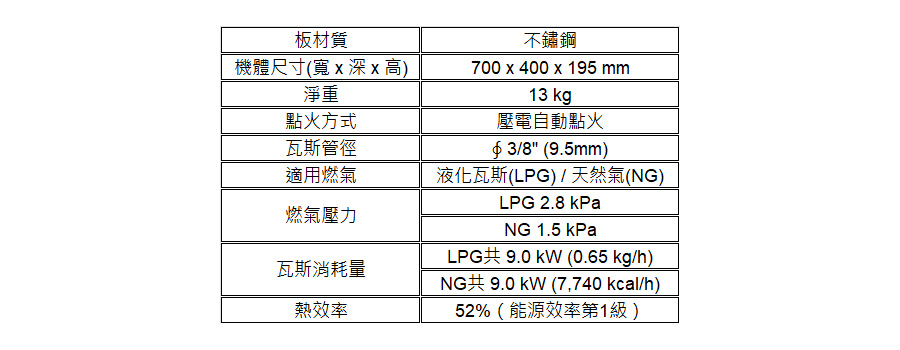 ▪ 熄火安全裝置,杜絕瓦斯外漏風險 建議售價10850元 本店售價9765元