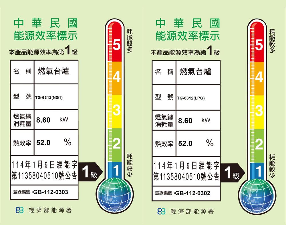 | 瓦斯消耗量 | LPG 共8.6kW NG 共8.6kW |