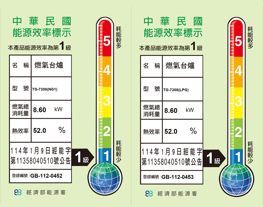 | 瓦斯消耗量 | LPG共8.6kW NG 共8.6kW |