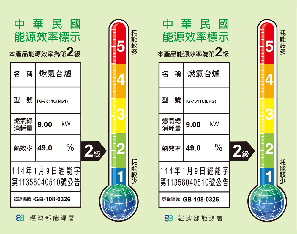LPG 共9.0kW (0.645kg/h) NG 共9.0kW(7,740kcal/h) |