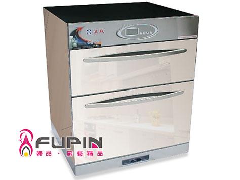 1.液晶顯示開關,操作方便,ㄧ次搞定。 2.臭氧殺菌。 3.雙P.T.C.熱風烘乾。 4.藍光LED燈照明節省用電(獨家設計,不用開廚房大燈即可拿碗盤) 5.烘乾溫度顯示。 6.時間顯示及設定。 7.鏡面5mm厚強化玻璃,安全穩固,抽拉順暢。 8.網架超大設計,可置較多碗盤。