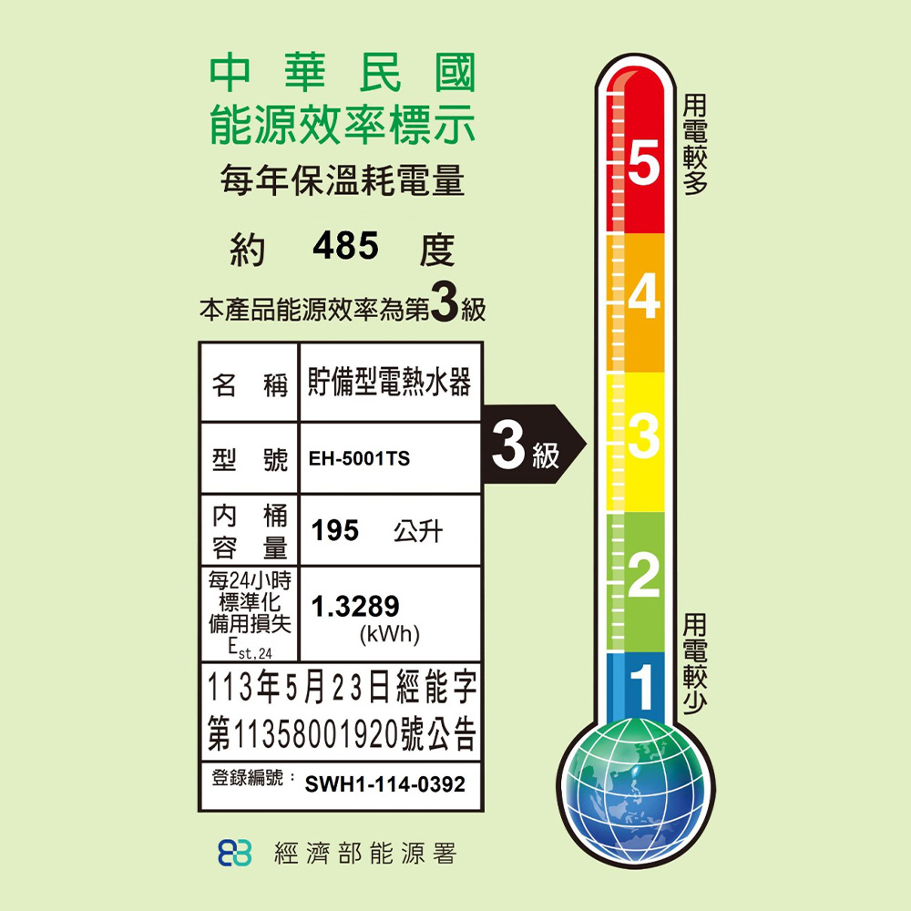 鴻茂牌 EH-5001TS 50加侖立式電能熱水器